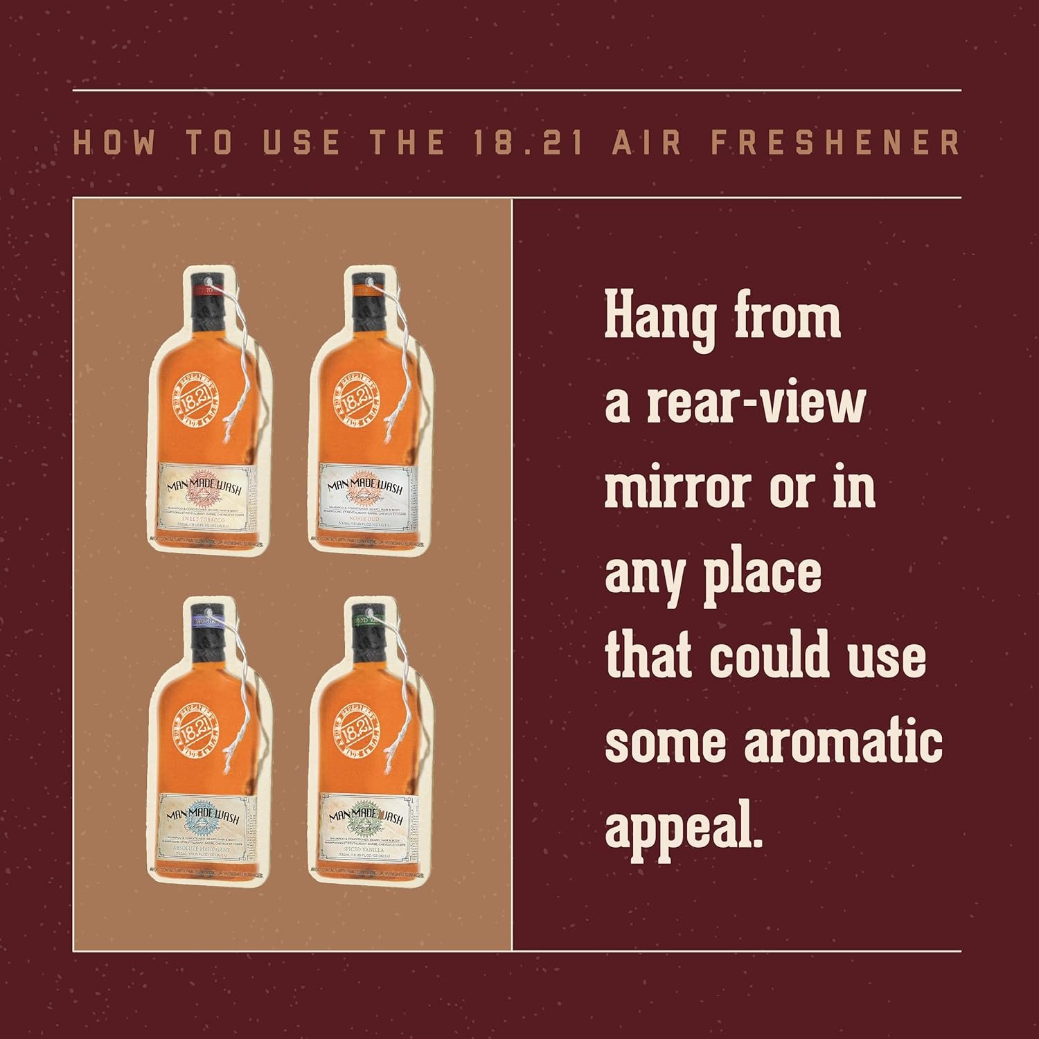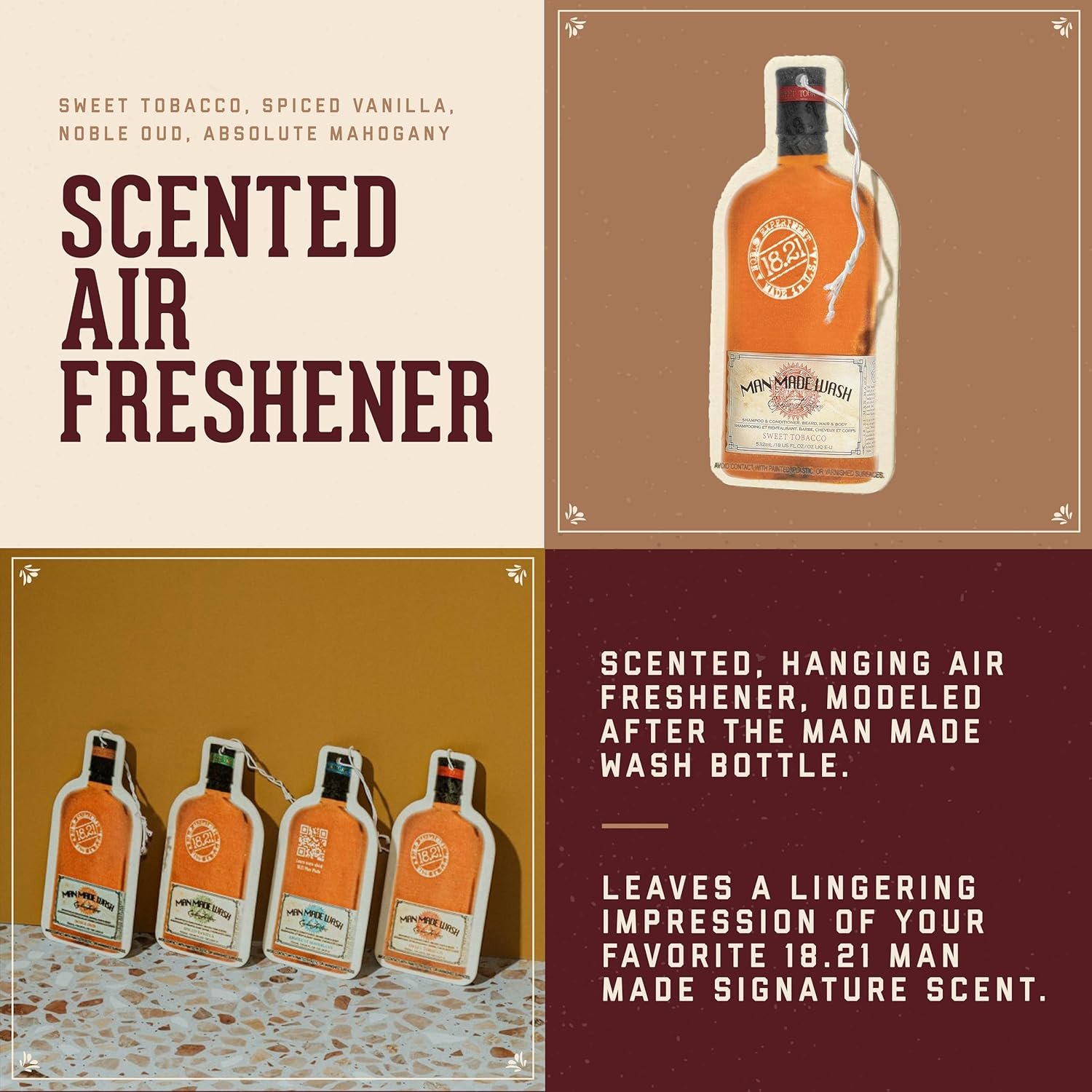 18.21 Man Made Premium Hanging Air Freshener Luxurious Original Scent, Long Lasting Fragrance for Car, Gym Bag, Travel Luggage or Closet, Manly Fragrances