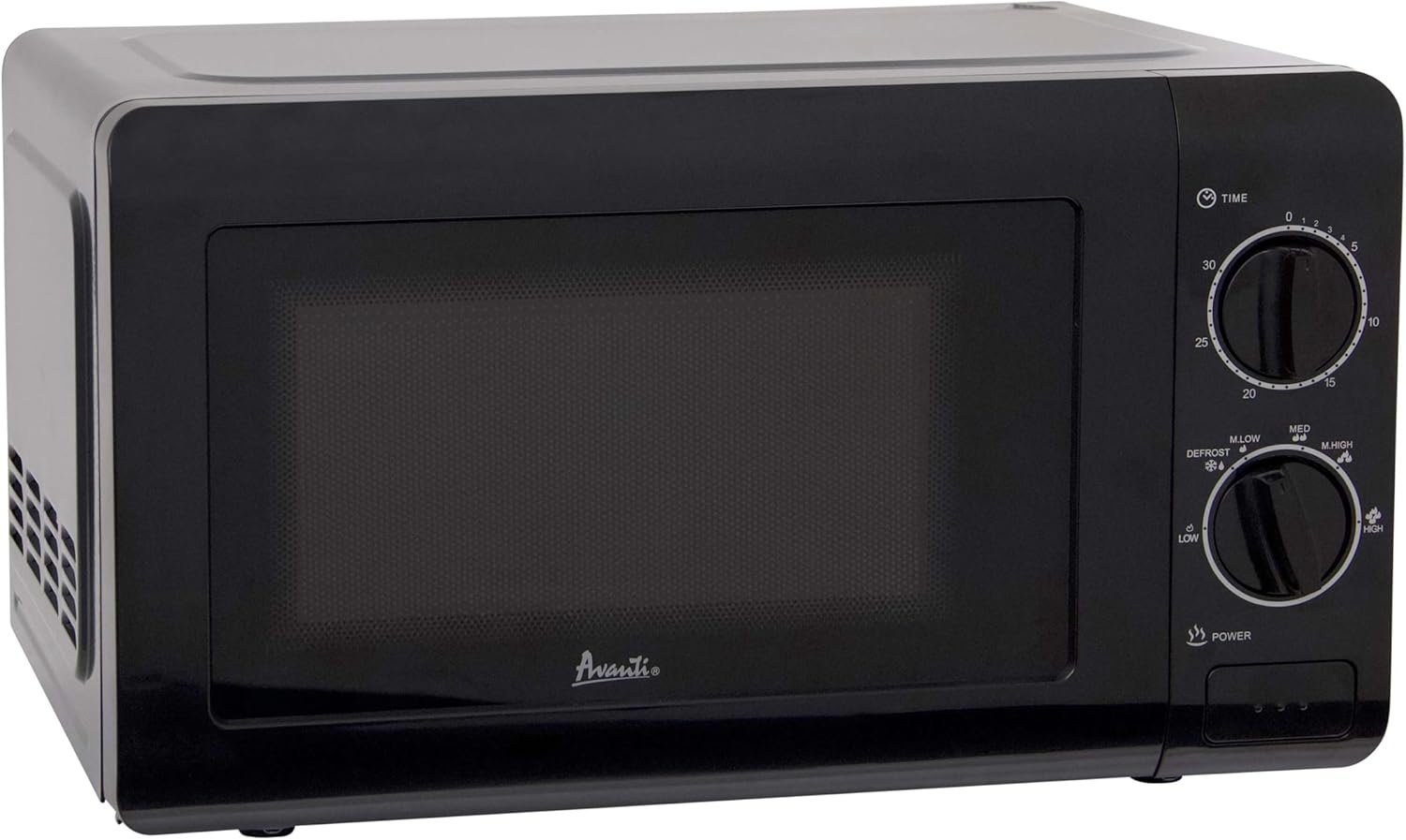 Avanti MM07V1B Microwave Oven 700-Watts Compact Mechanical with 5 Power Settings, Defrost, Full Range Temperature Control and Removable Glass Turntable, 0.7-Cu.Ft, Black