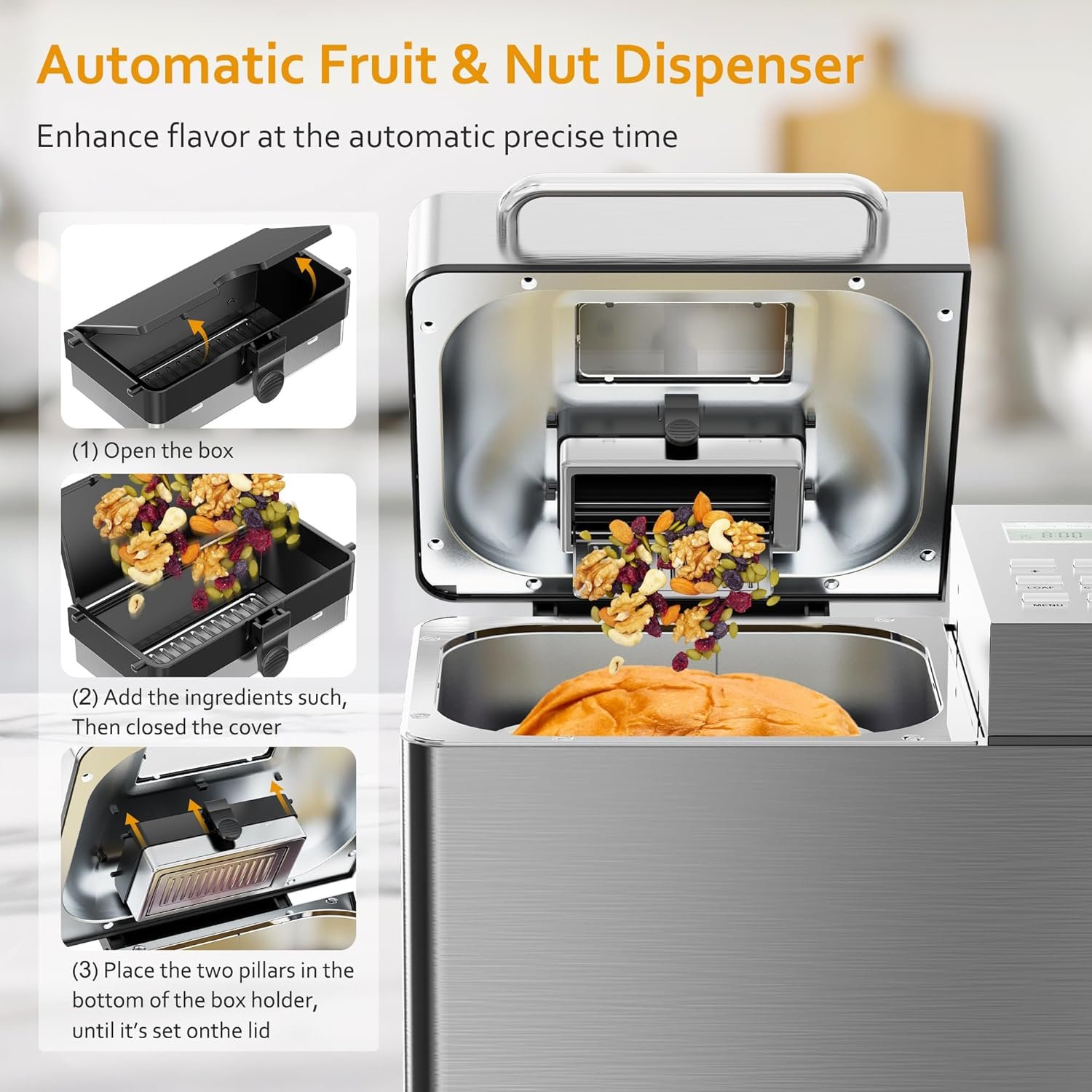 making. Our compact bread makers feature 19 programs, including sourdough bread maker machines and gluten-free bread machines, catering to all baking needs. With a nut dispenser Kitcanis ensures flawless results. Perfect for artisan loaves or quick doughs, our bread makers machines combine convenience and quality. Kitcanis—your go-to bread machine maker for homemade goodness!