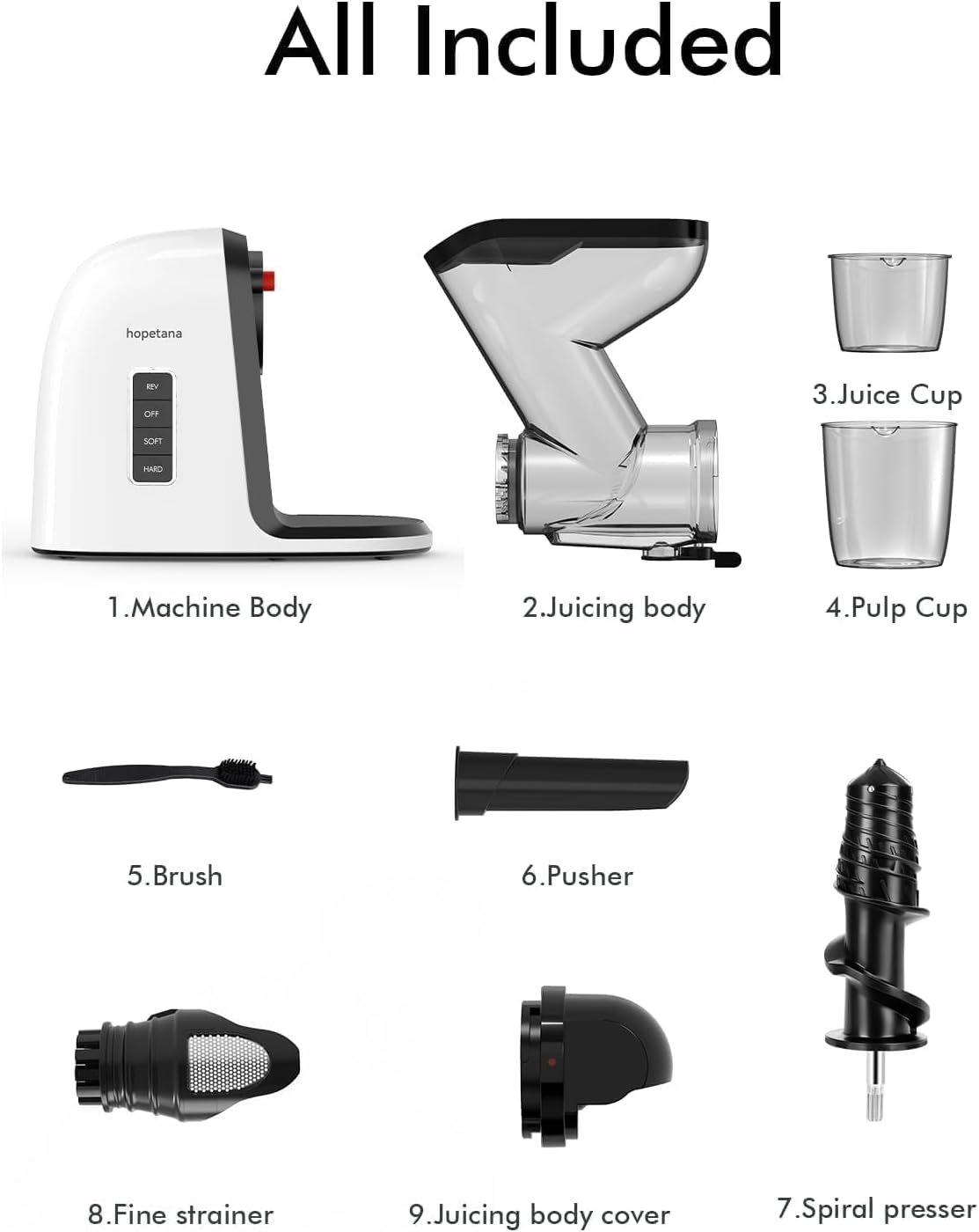 【Optimal Nutrition, Minimal Waste】Harness the power of HOPETANA low-speed cold press technology to maximize nutrient retention. Operating at 80 RPM, this innovative system minimizes foam, prevents clogging, and enhances juice yield, ensuring less wastage and a bounty of freshly extracted goodness.