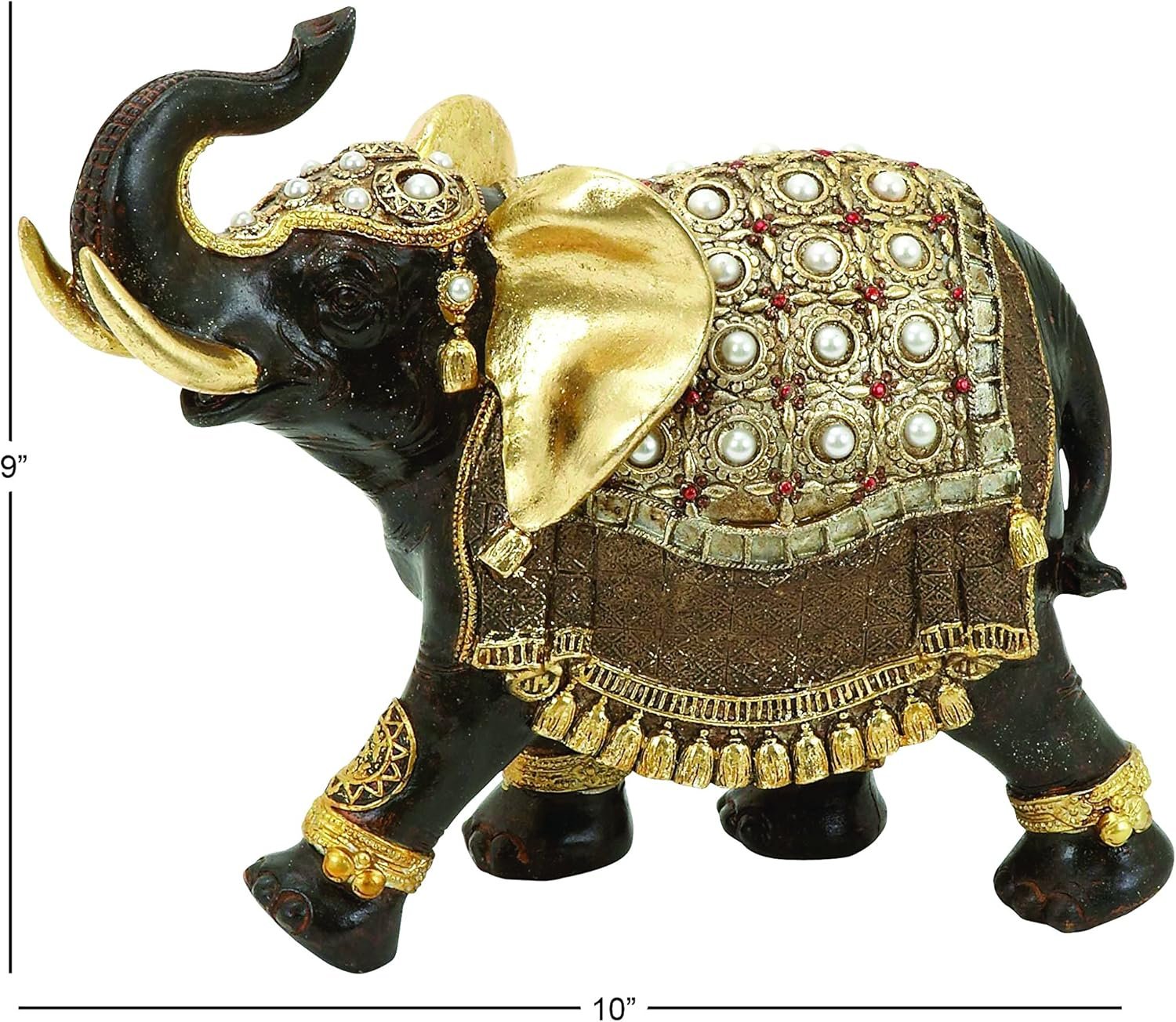 Deco 79 Polystone Elephant Handmade Decorative Sculpture Home Decor Statue, Accent Figurine 10″ x 4″ x 9″, Brown