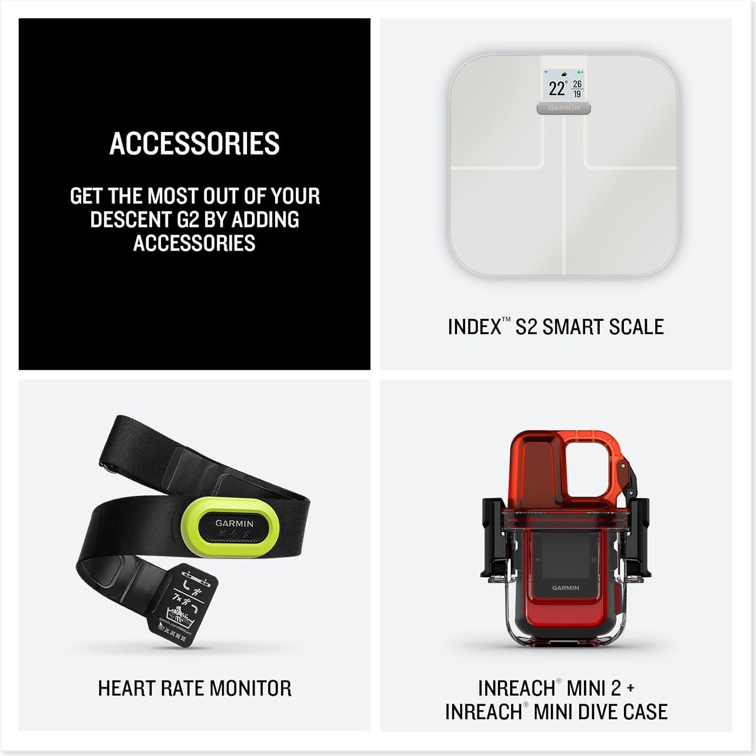 Descent™ G2 is the watch-style dive computer for both your worlds. It features a bright AMOLED display and 10 ATM dive rating — and it tracks multiple dive types whether you’re a recreational scuba diver, technical scuba diver or freediver. Descent G2 is also enabled with GPS to help mark your surface entry and exit points. Pair with the Garmin Dive™ smartphone app to upload, share and review dives, and store your favorite dive site locations. The Descent G2 dive computer is made with recycled ocean-bound plastics and includes built-in sports apps and 24/7 health monitoring. Plus, you’ll get smart notifications (when paired with your compatible smartphone) and up to 10 days of battery life in smartwatch mode.