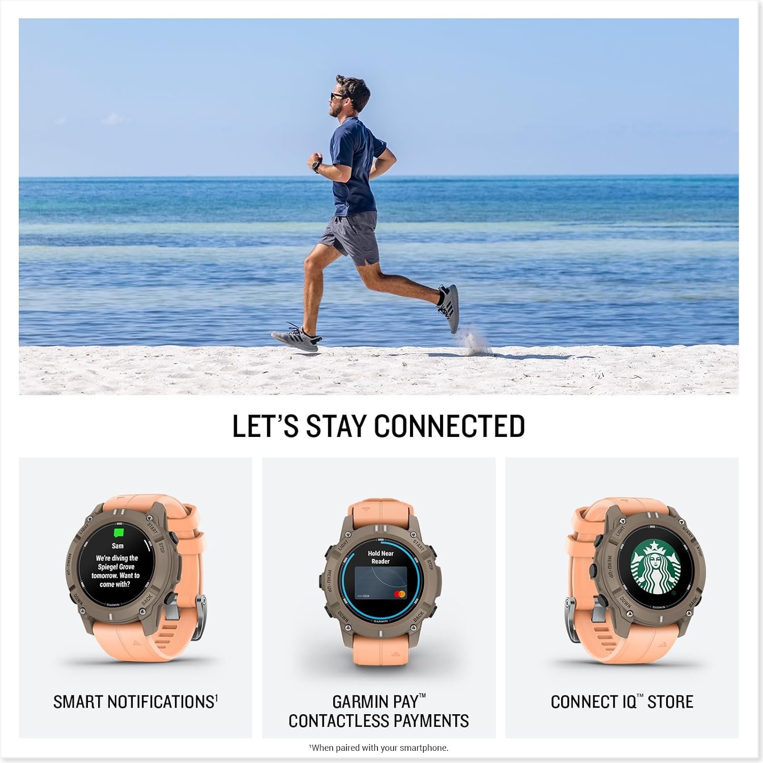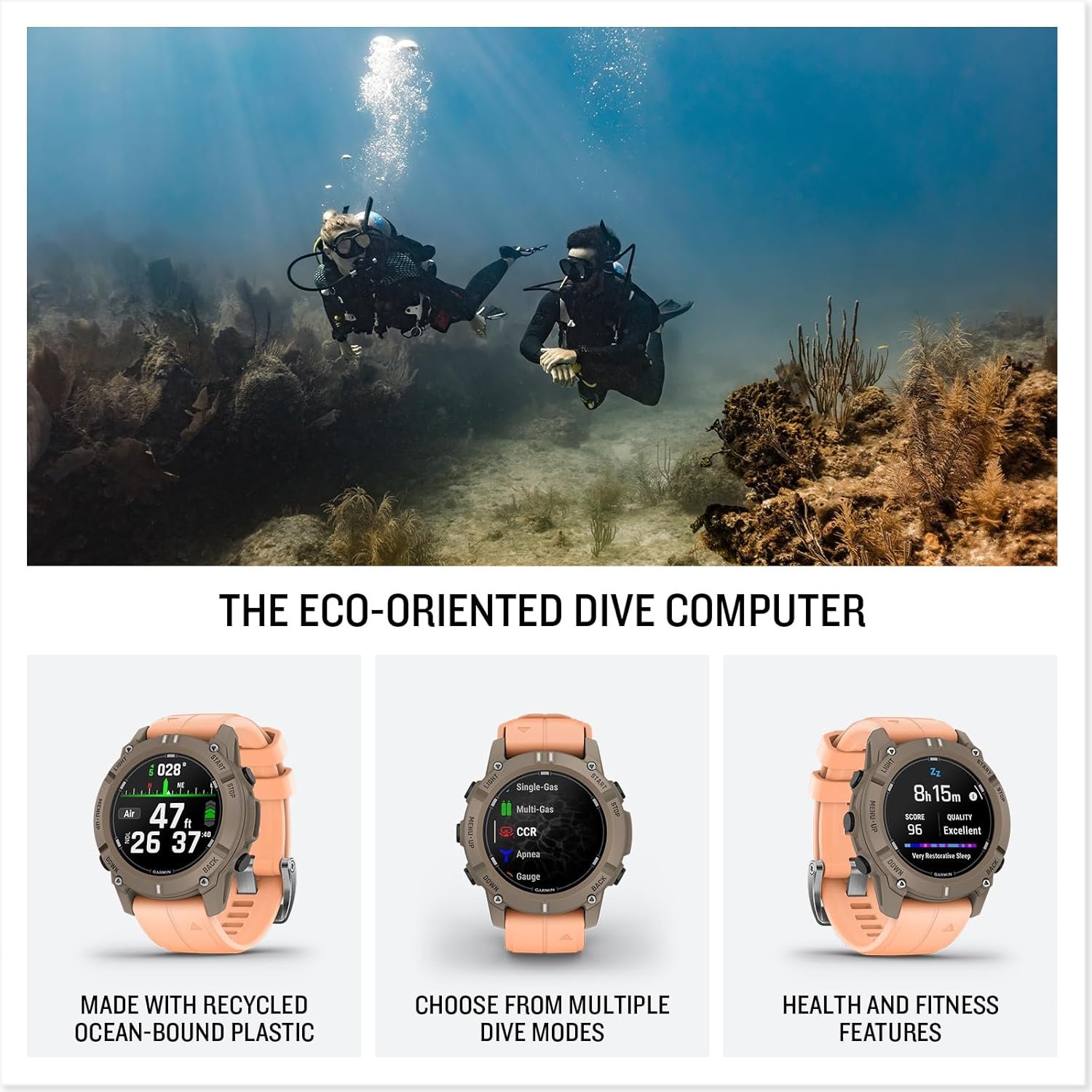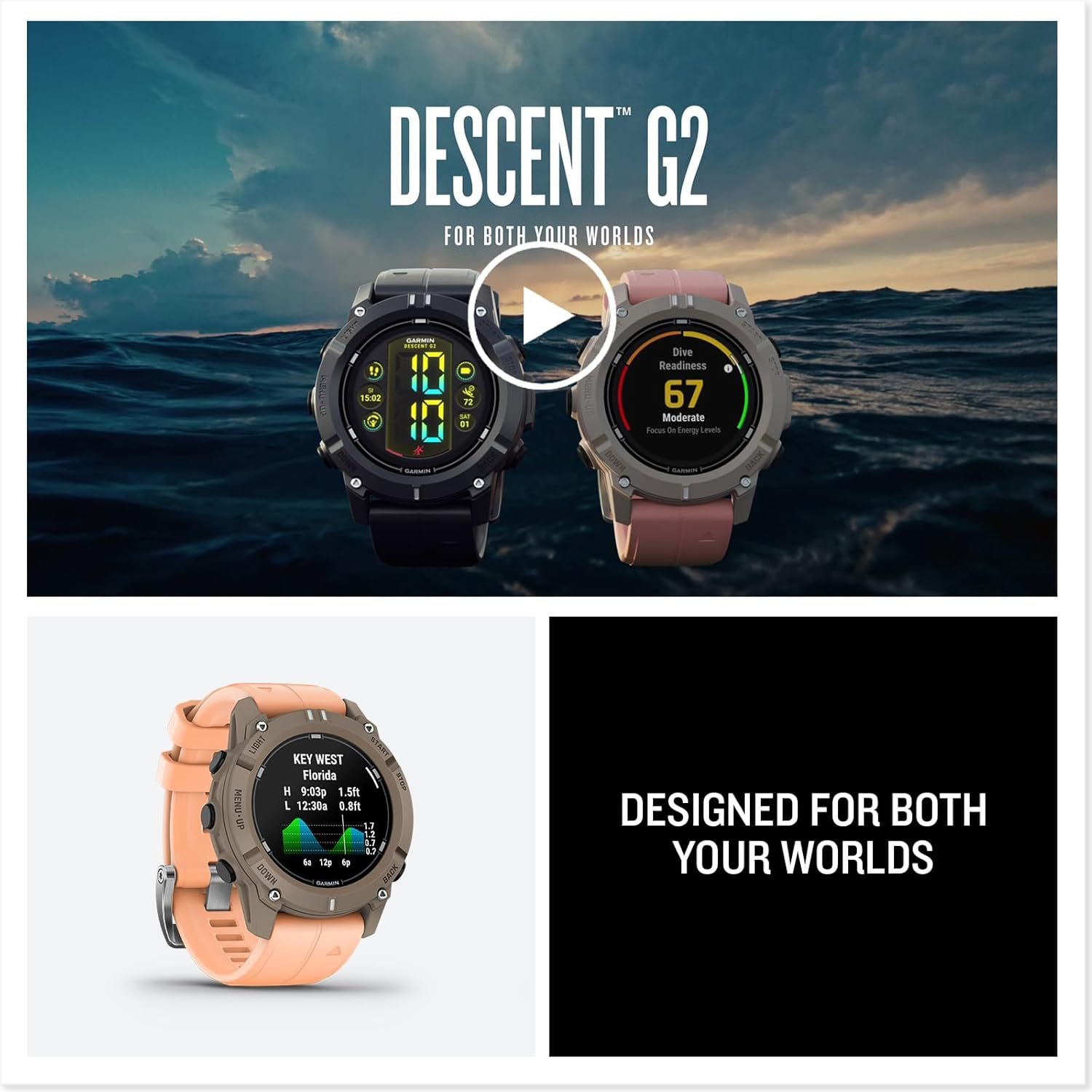 Garmin® Descent™ G2, Watch-Style Dive Computer, Bright AMOLED Display, Multiple Dive Modes, Health and Wellness Features, Paloma with Shell Pink Band