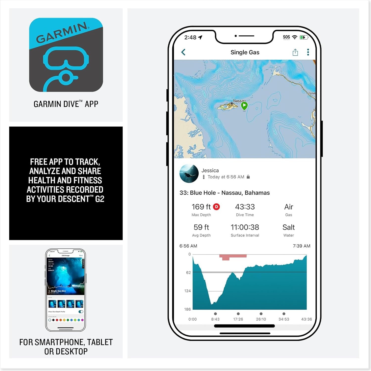 Store dive logs on device, and review in the Garmin Dive smartphone app