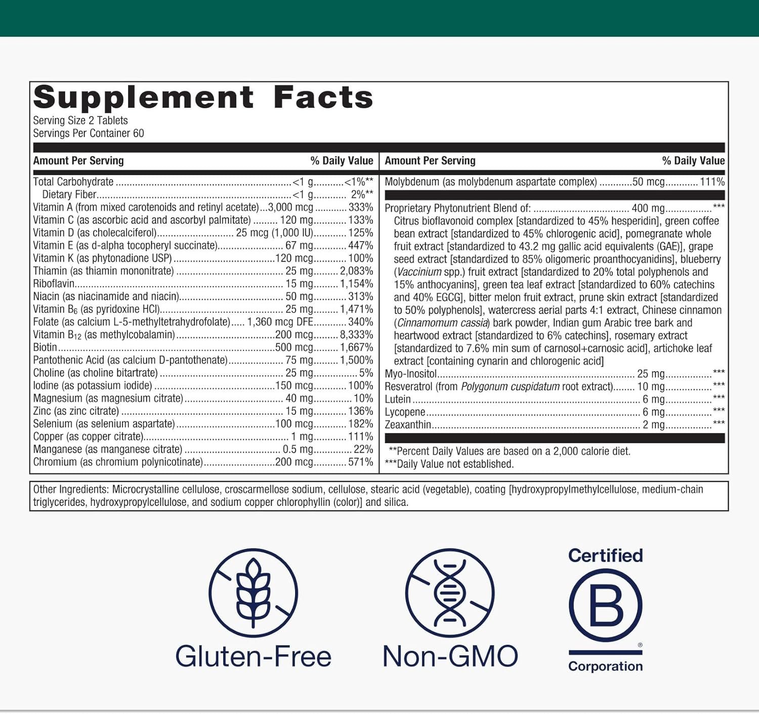 PhytoMulti Supplement: Proprietary blend of 13 concentrated extracts and phytonutrients found in a healthy Mediterranean diet