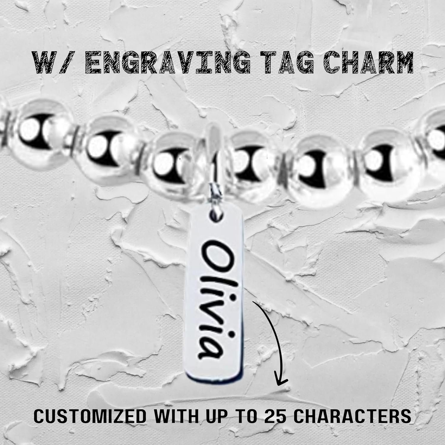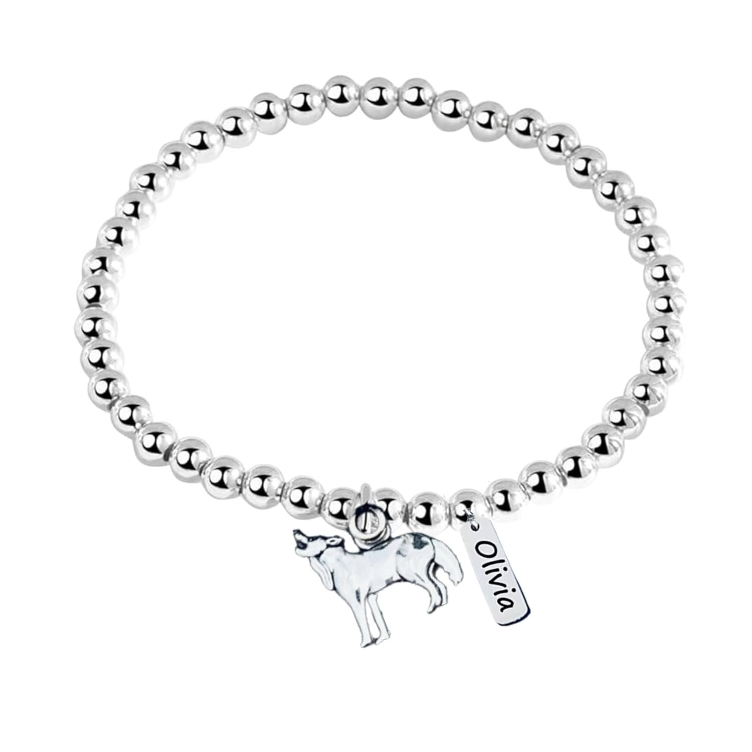 Personalized Wolf Beaded Adjustable Bracelet with Engraved Tag Charm, Wolf Gift, Wolf Jewelry, Custom Wolf Lover Accessories for Girls