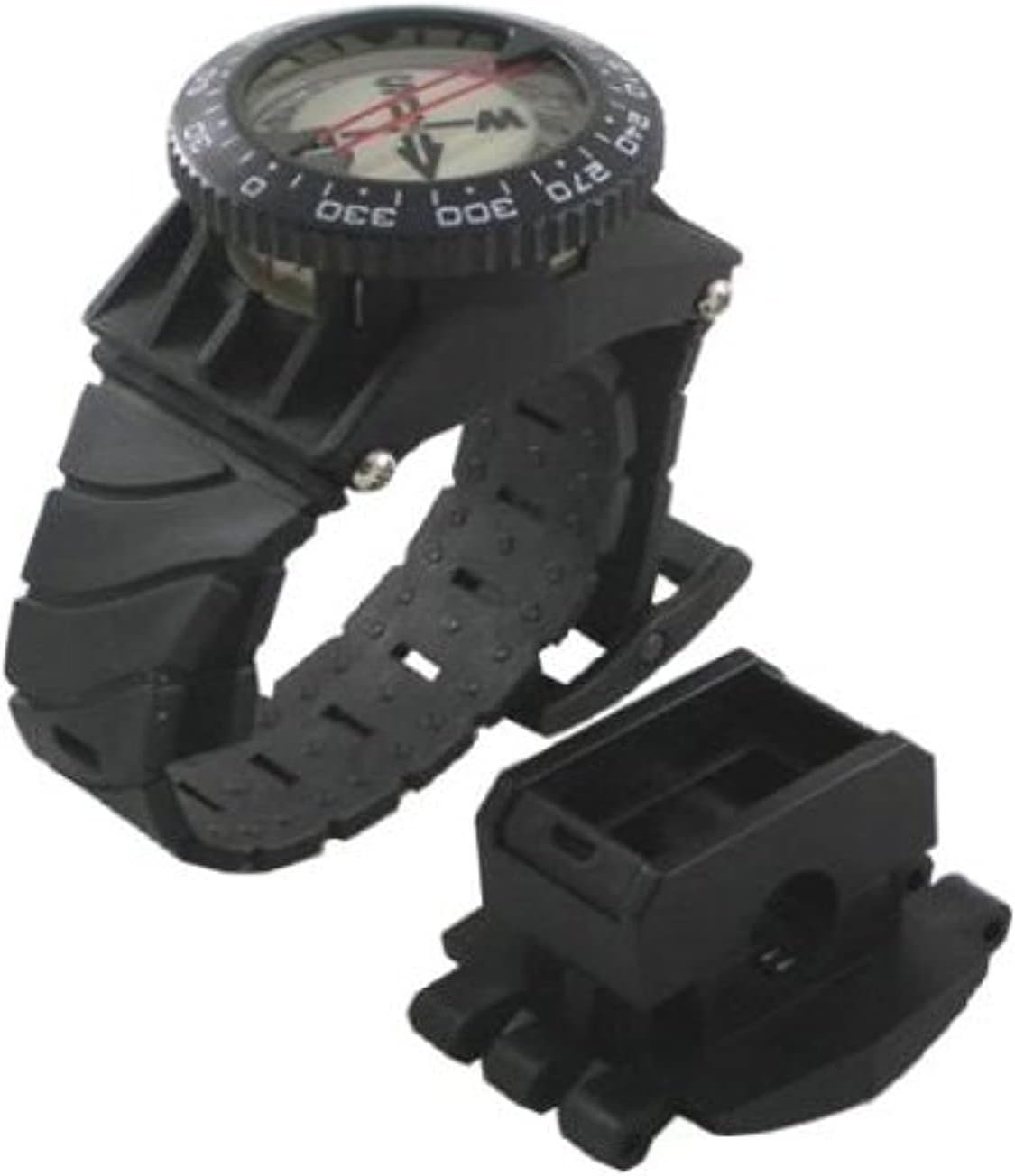 Scuba Choice Deluxe Diving Wrist Compass with Hose Mount, Glowing Dial, 80m Depth Rating, 15” Adjustable Strap, Portable for Underwater Navigation, Reliable & Durable – Black
