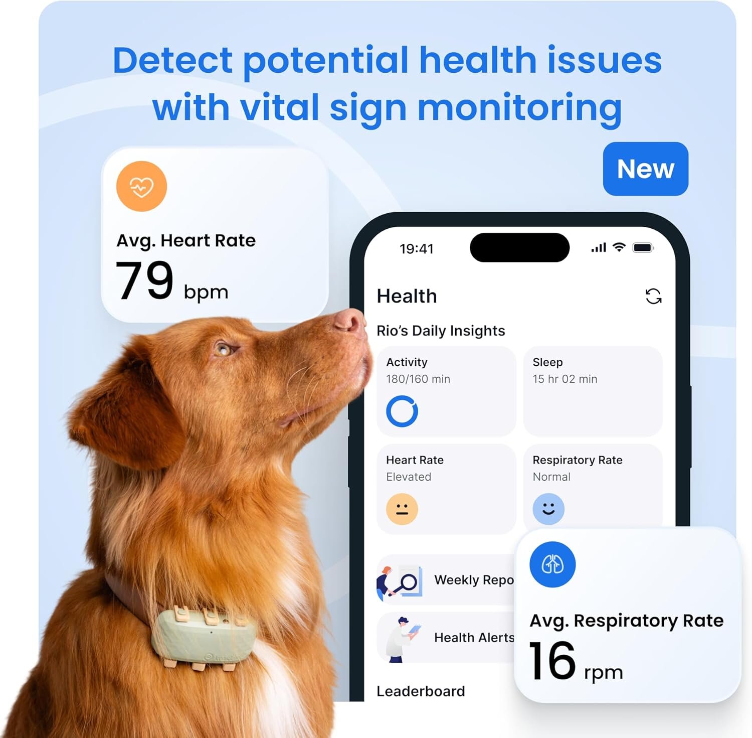 VITAL SIGNS MONITORING: The Tractive smart tracker monitors changes in your dog’s heart and respiratory rates, helping detect potential issues before they become visible.