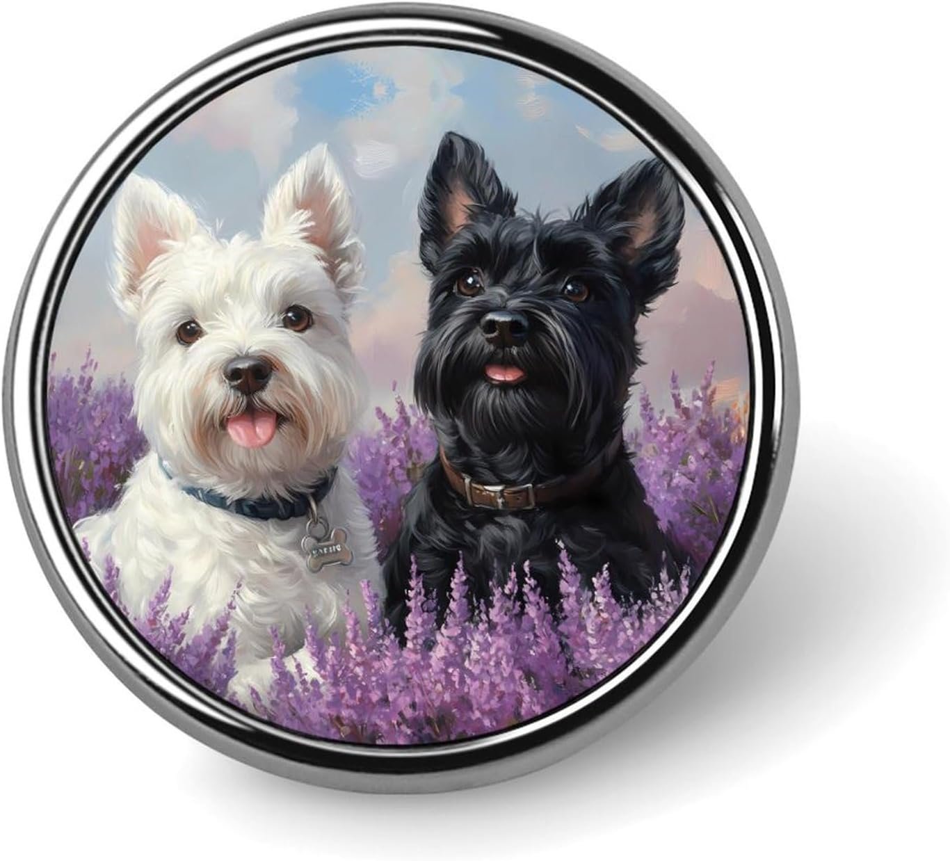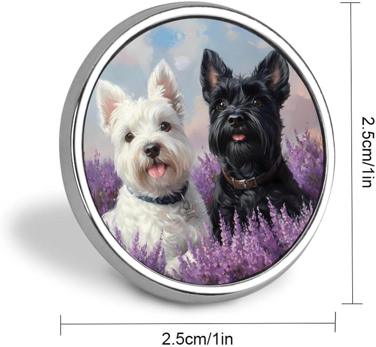 Westie and Scottie Dogs Painting Custom Round Lapel Pin Personalized Brooch Badge Hat Clothing Jewelry Accessories for Wedding Party